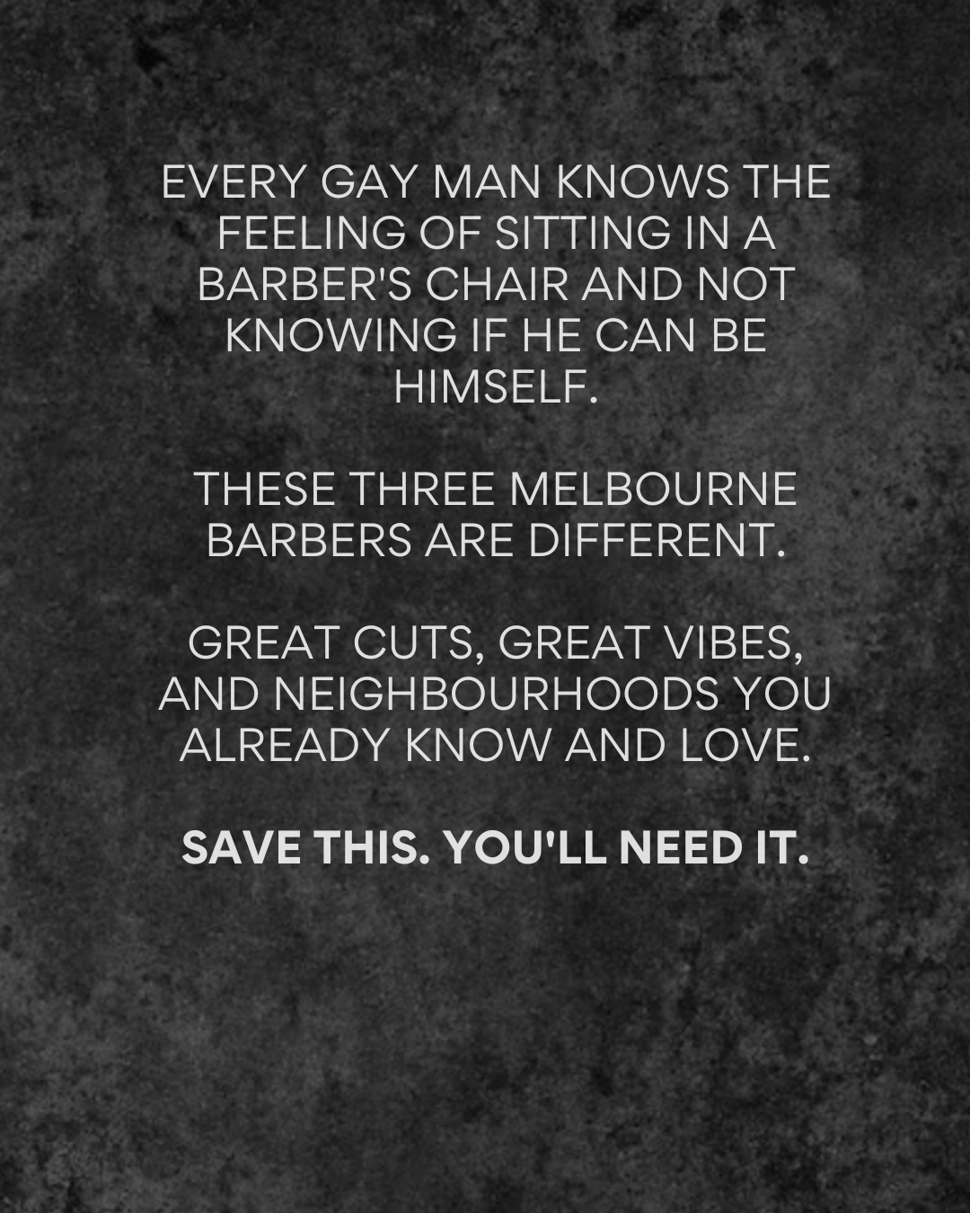 Every gay man knows the feeling of sitting in a barber's chair and not knowing if he can be himself. Whether it's editing a story about your weekend, avoiding pronouns, or just feeling like the odd one out in a room full of blokes talking about football, it's an experience most gay men have had more than once.
