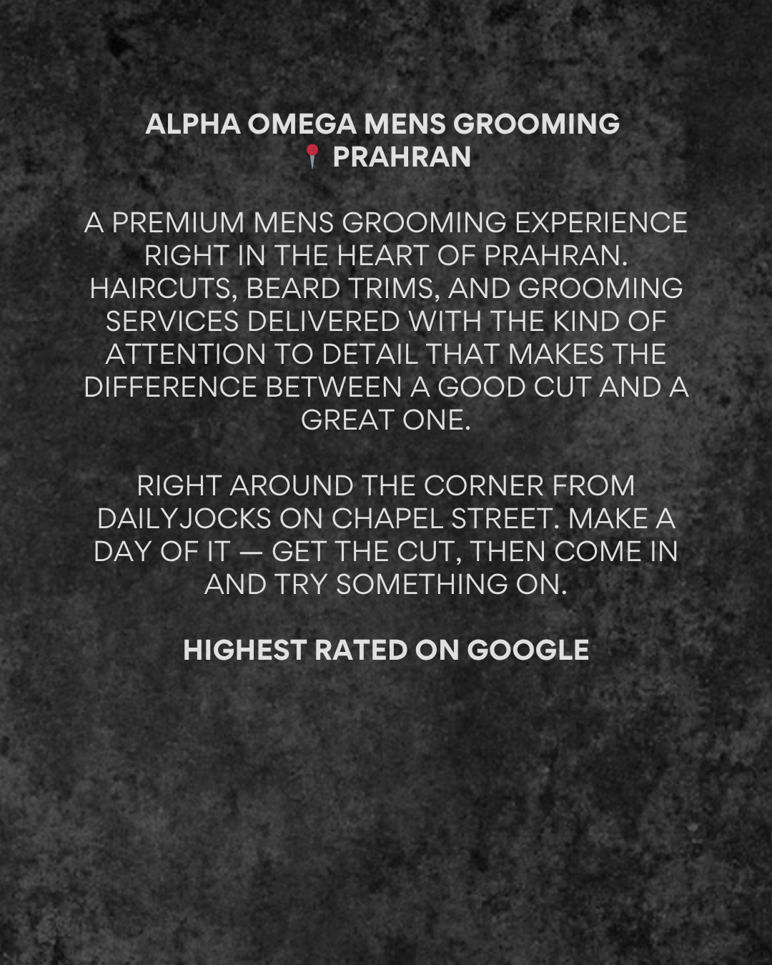 📍 Alpha Omega Mens Grooming, 104 Greville Street, Prahran